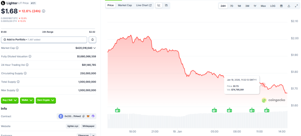 Após atingir picos de atividade no período que antecedeu seu airdrop em 2025, a Lighter vem registrando queda expressiva em seu volume de negociação. O token LIT seguiu o mesmo caminho e atingiu novas mínimas, acumulando perda superior a um terço em um mês.