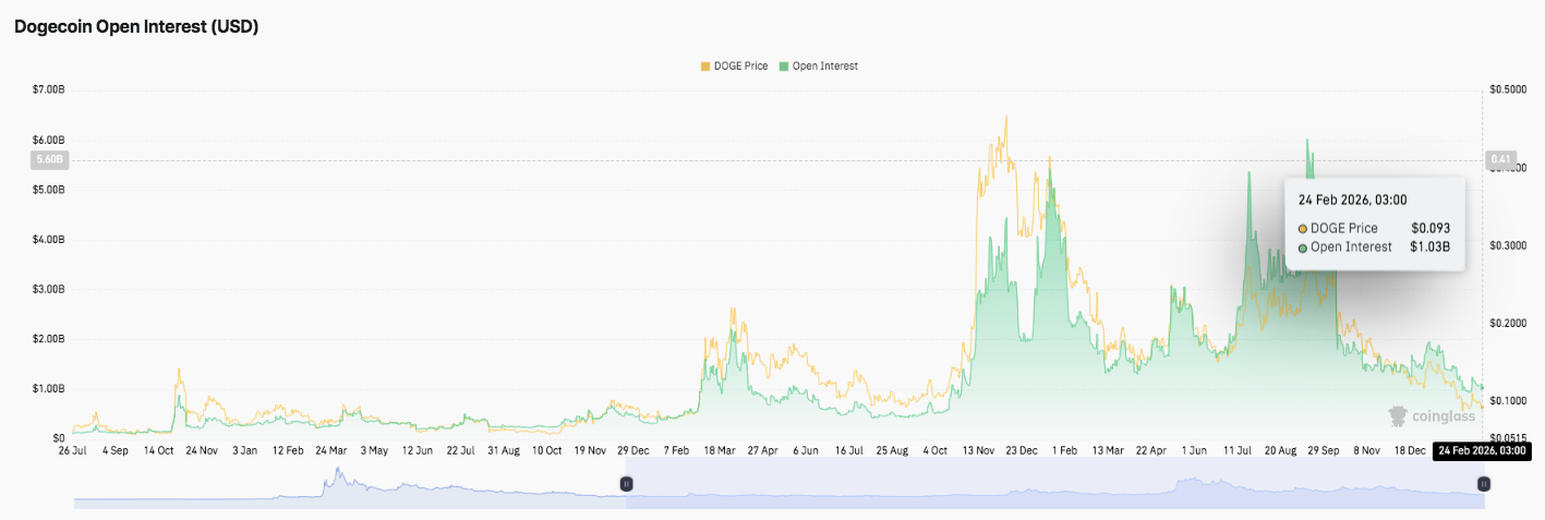 Em 24 de fevereiro de 2026, o open interest estava por volta de US$1,03 bilhão. Esse número mostra um mercado moderado e distante de extremos especulativos. Além disso, os traders seguem cautelosos e evitam grandes exposições.